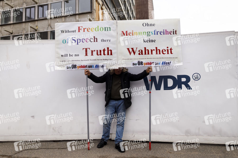 Demonstranten gegen den WDR bei den Protesten gegen das von einem Kinderchor gesungene Satire-Lied 'Meine Oma ist ne alte Umweltsau' von WDR2 am WDR Gebäude in der Breite Straße. Köln, 04.01.2020