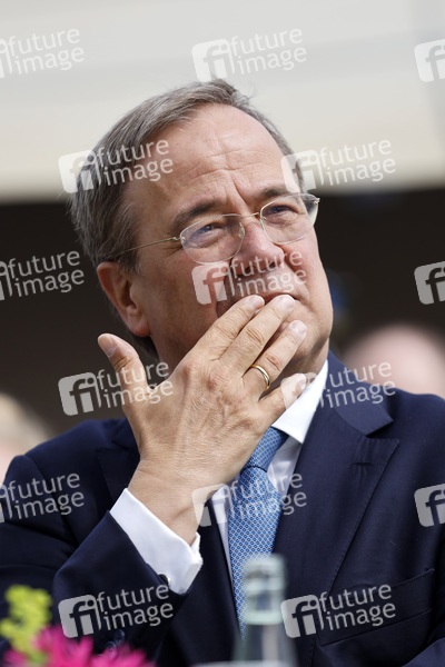 Armin Laschet bei der Inbetriebnahme das Pumpwerks Oberhausen und damit des gesamten Abwasserkanals Emscher. Bis Ende 2021 wird die Emscher sukzessive von ihrer Schmutzfracht befreit. Oberhausen, 20.08.2021
