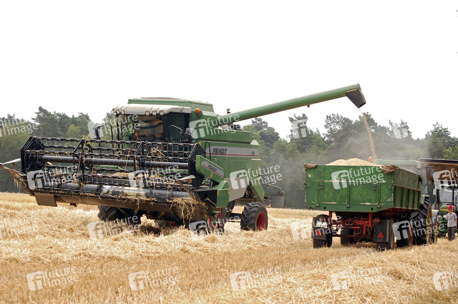 Feld, Acker, Getreide, Mähdrescher, Landwirtschaft, Traktor, Trecker, Anhänger