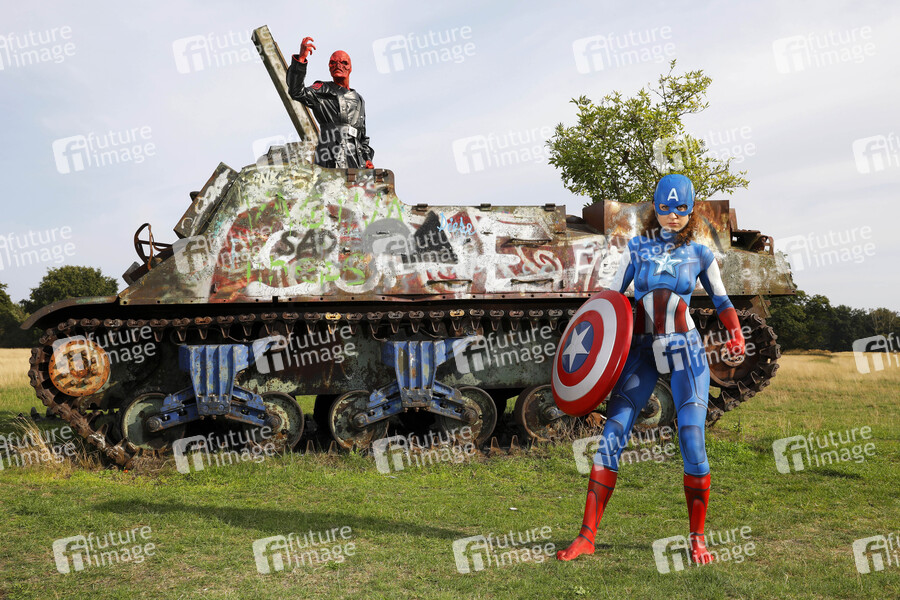 GEEK ART - Bodypainting and Transformaking: Captain America vs. Red Skull Photoshooting mit Lena und Patrick auf einem Truppenübungsplatz. Langenhagen, 20.09.2020 - Ein Projekt des Fotografen Tschiponnique Skupin und des Bodypainters und Transformakers Enrico Lein