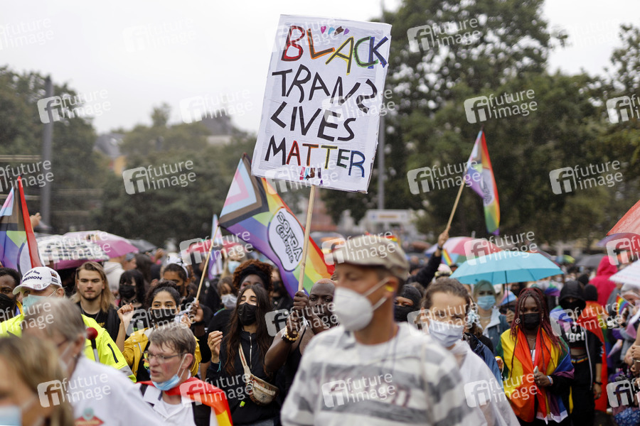 Etwa 10.000 Menschen waren auf der Christopher-Street-Day-Parade in Köln. Mit dem Marsch am Rhein sollte unter anderem für die Rechte von Schwulen, Lesben, Bisexuellen und Transgender demonstriert werden. Köln, 29.08.2021