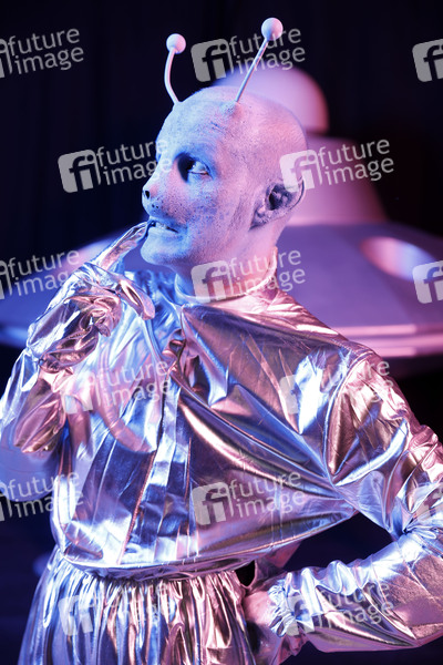 Projekt Farbkörper, Bodypainting, Body-Painting, Cosplay, Cosplayer, Körperkunst, Körperfarben, Farbe, Bemalung, Kunst, Make-up, Latexapplikationen, Maskenbildnerei, unbekanntes Flugobjekt, unidentifiziertes Flugobjekt, Außerirdische, fliegende Untertasse, Raumschiff, Fünfziger Jahre, Retro, Landung, Science Fiction, body painting, body art, latex applications, unknown flying object, spacecraft, flying saucer, landing, colors, fifties, alien, unidentified flying object