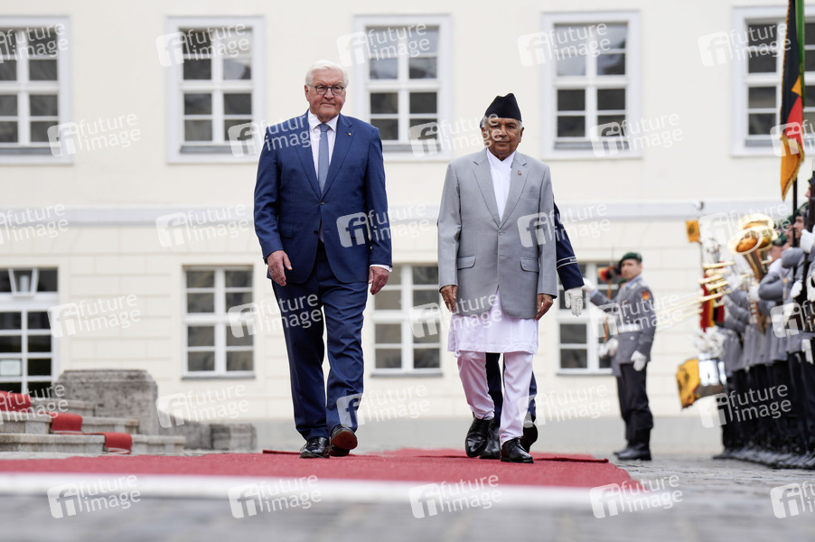 Frank-Walter Steinmeier und Ram Chandra Paudel beim Empfang des Präsidenten von Nepal mit militärischen Ehren im Schloss Bellevue. Berlin, 17.06.2024