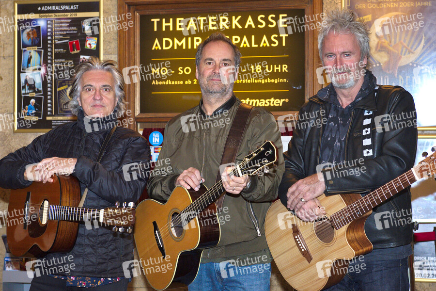 Peter Howarth (The Hollies), Mick Wilson (10cc) und Pete Lincoln (The Sweet, Sailor) von Frontm3n beim Fototermin zum Medientag mit Frontm3n im Admiralspalast. Berlin, 13.12.2019