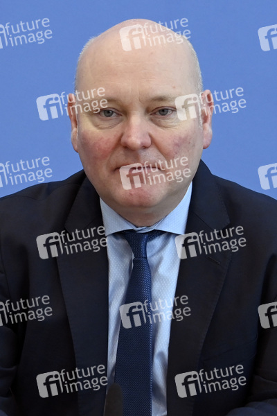 Prof. Dr. Achim Truger bei einer Pressekonferenz der Wirtschaftsweisen zur Vorstellung der aktualisierten Konjunkturprognose - Sachverständigenrat zur Begutachtung der gesamtwirtschaftlichen Entwicklung im Haus der Bundespressekonferenz. Berlin, 30.03.2022