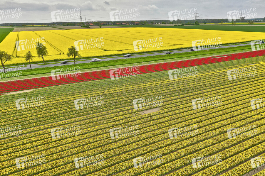 Tulpe, Tulpen, Feld, Farbe, Blumen, Blume, Pflanzen, Zierpflanzen, Schnittblumen, Tulpenfeld, Luftaufnahme, Luftbild, Drohne, Drohnen, Kameradrohne, Drohnenaufnahme