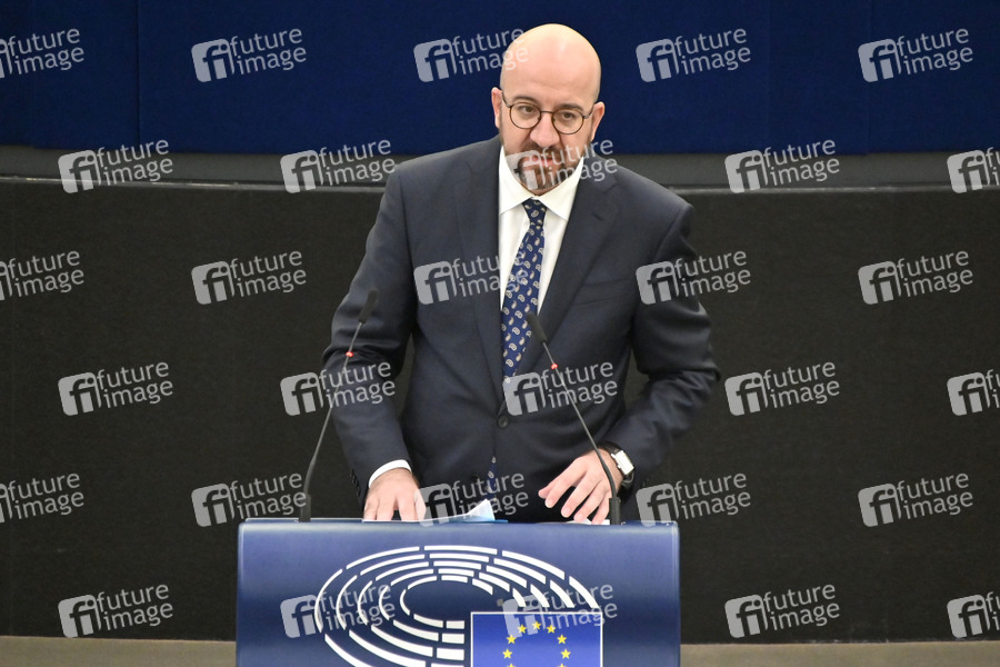Charles Michel bei einer Plenartagung zu den jüngsten Entwicklungen des Krieges gegen die Ukraine und der EU-Sanktionen gegen Russland und deren Umsetzung im Plenarsaal des Europäischen Parlaments. Straßburg, 06.04.2022