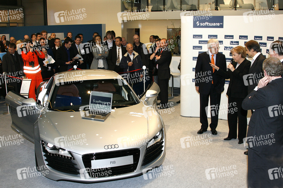 Eröffnungsrundgang der Bundeskanzlerin zur CeBIT 2007, der weltgrößten Messe für Informations- und Computertechnik auf dem Messegelände in Hannover. Am Stand der Software AG mit elektronisch ausgerüstetem Audi A8