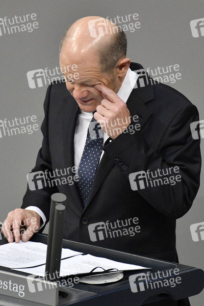 Olaf Scholz in der 225. Sitzung des Deutschen Bundestages im Reichstagsgebäude. Berlin, 23.04.2021