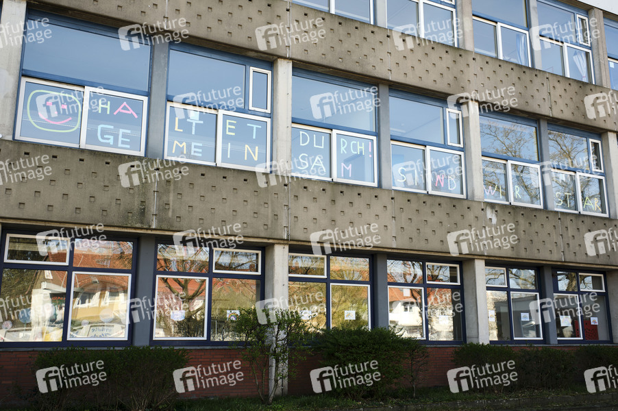'Alles wird gut' - Fensterbilder in einer Grundschule Gartenheimstraße während der Coronakrise. Hannover, 12.04.2020