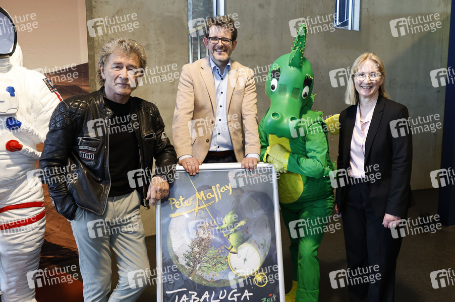Peter Maffay, Dirk Schlesinger und Judith Marquard beim Pressegespräch zur Premiere des Fulldome-Erlebnisses der Musikshow 'Tabaluga und die Zeichen der Zeit' im Planetarium. Halle (Saale), 02.05.2024