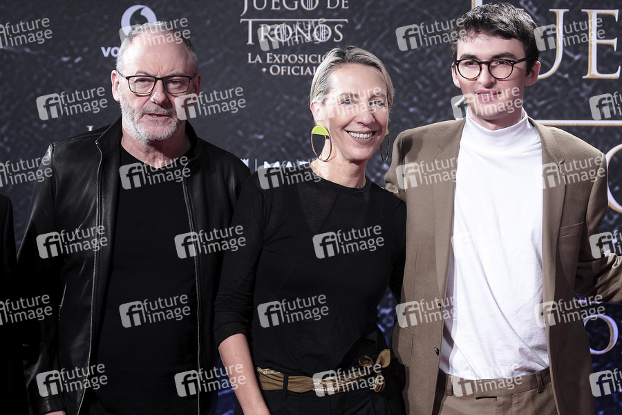 Liam Cunningham, Michele Clapton und Isaac Hempstead-Wright bei der Präsentation der Ausstellung 'Game of Thrones: The Touring Exhibition' auf dem Messegelände IFEMA. Madrid, 24.10.2019