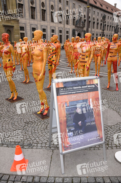 Die Kunst-Installation 'Broken' von Dennis Josef Meseg als Mahnmal gegen Gewalt an Frauen auf dem Odeonsplatz. München, 08.12.2020
