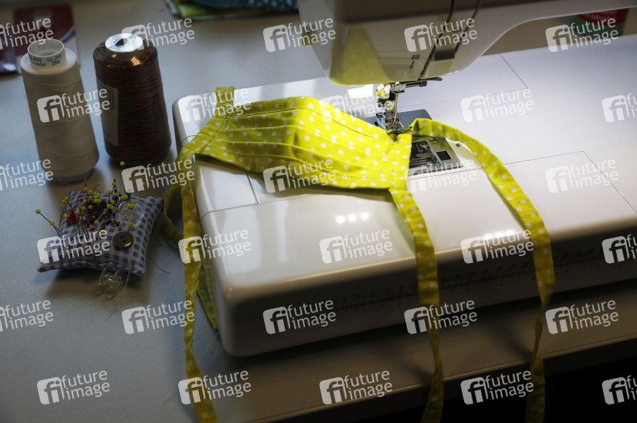 Nähen, Nähmaschine. Handarbeit, Schutz, Masken, Maske, Gesichtsmaske, Mundschutz, Mund-Schutz, Mundschutzpflicht, Mundschutz-Pflicht, Mund-Nase-Schutz, Mund-Nasen-Schutz, Seuchenschutz, Corona-Schutz, Virus, Viren, Corona, Sars-CoV-2, Covid-19, Coronavirus, Coronaviren, Corona-Virus, Corona-Viren, Ansteckung, Ansteckungsgefahr, Epidemie, Pandemie, Infektion, Infektionen, Symbolfoto, Symbolbild