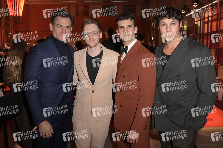 Torben Liebrecht, Timur Bartels, Ilyes Raoul und Victor Kadam beim 21. NRW Empfang des Landes NRW und der Film- und Medienstiftung NRW im Rahmen der Berlinale 2024 in der Vertretung des Landes Nordrhein-Westfalen. Berlin, 18.02.2024