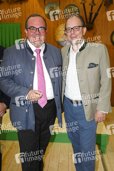 Clemens Baumgärtner und Manuel Pretzl bei der Präsentation des offiziellen Oktoberfest-Maßkrug 2022 im Armbrustschützen-Festzelt auf der Theresienwiese. München, 25. August 2022