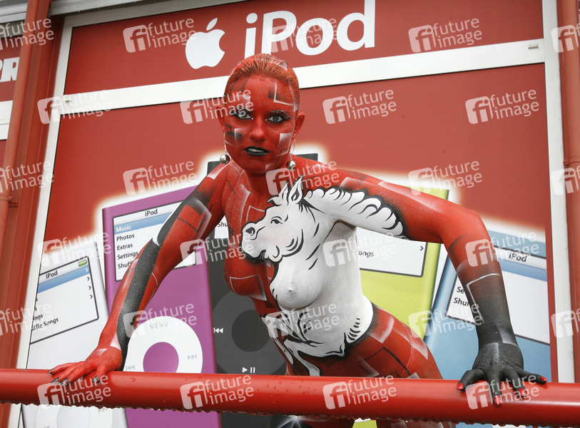 Bodypainting und Fotoshooting mit Model Sabine im Media Markt Hameln, anlässlich des 29. Tag der Niedersachsen. Künstler: Jörg Düsterwald