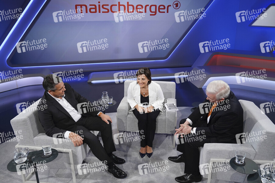 Sigmar Gabriel, Sandra Maischberger und Roland Koch in der ARD-Talkshow 'Maischberger' im WDR Studio BS 3. Köln, 08.05.2019