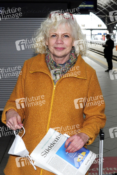 Karin Düwel bei der Ankunft zur Aufzeichnung der MDR-Talkshow 'Riverboat' im Studio 3 der Media City Leipzig. Leipzig, 05.03.2021