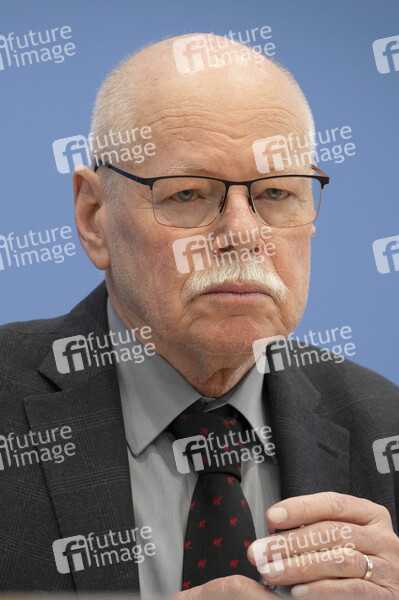 Ulrich Mäurer bei der Bundespressekonferenz zur Vorstellung der Polizeilichen Kriminalstatistik 2024 im Haus der Bundespressekonferenz. Berlin, 02.04.2025