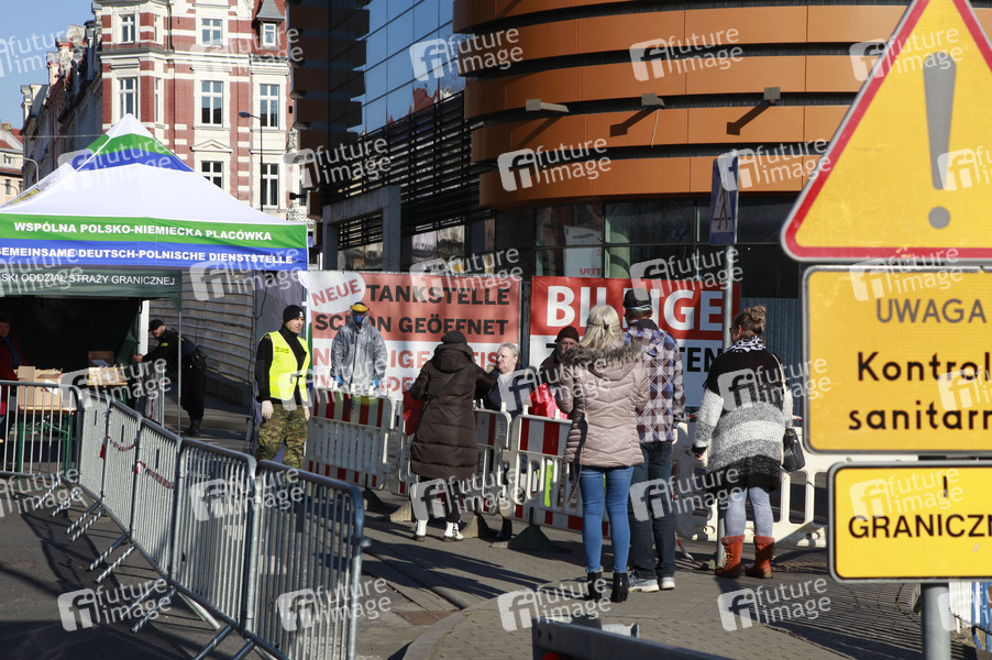 Grenzverkehr, Grenze, EU, Epidemie, Pandemie, Corona, Virus, Infektion, Lungenkrankheit, Schutzmaske, Mundschutz, Schutzanzug, Polen, SARS-CoV-2, Covid-19, Schutzmaßnahmen, Grenzübergang, Corona-Angst, Ansteckungsangst, Seuche, Corona-Test, Corona-Tests, Coronatest, Coronatests, anstecken, Corona-Krise, Vorbeugung, Prävention, schützen, Schutz, Papst-Johannes-Paul-II.-Brücke