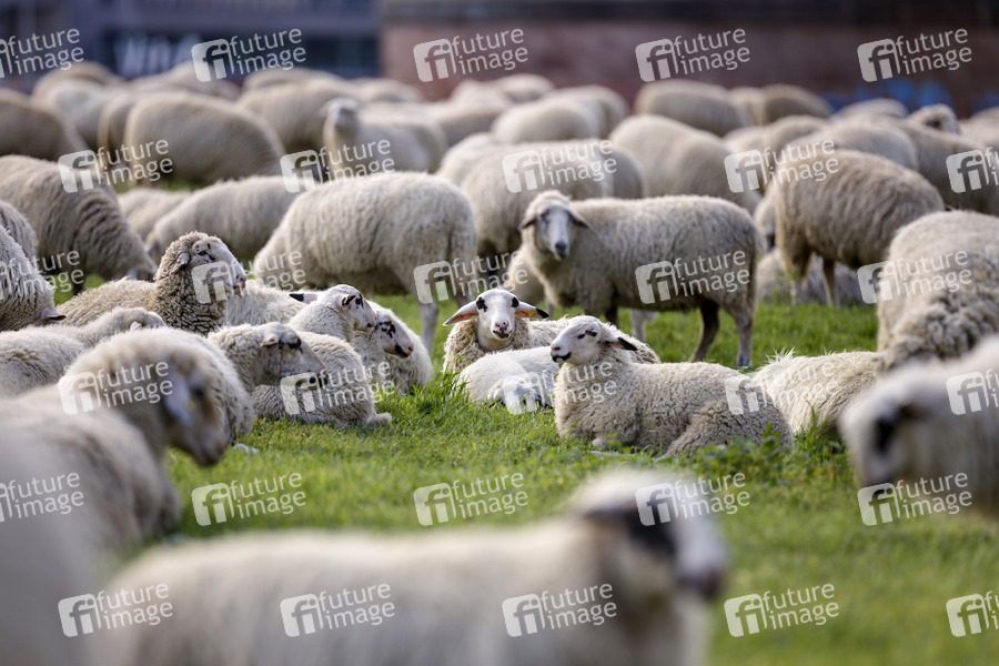 Als Herdenimmunität bezeichnet in der Epidemiologie eine indirekte Form des Schutzes vor einer ansteckenden Krankheit wie Covid-19, wenn ein hoher Prozentsatz einer Population schon immun geworden ist - im Bild eine Schafherde auf den Poller Wiesen. Köln, 01.05.2020