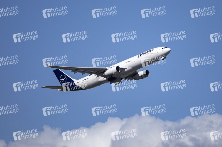 Startender Jet in die Osterferien im Osterflugfreiseverkehr am Frankfurter Flughafen Fraport. Frankfurt, 03.04.2021