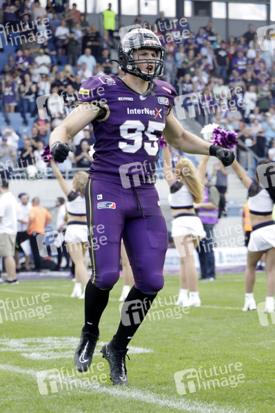 Daniel Bartmann (95) beim American Football-Spiel Frankfurt Galaxy gegen Cologne Centurions in der PSD Bank Arena Frankfurt. Frankfurt am Main, 13.07.2024