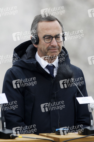 Bruno Retailleau bei der Pressekonferenz nach dem europäischen Ministertreffen zur Migrationspolitik auf der Zugspitze. Garmisch-Partenkirchen, 18.07.2025