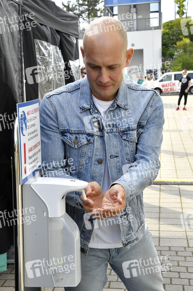 Sänger, Oli P., Schauspieler, Moderator, Oliver Petszokat, Musik, Konzert, Auftritt, Bühne, Stage, live, Unterhaltung, Entertainment, Kultur, Desinfektion, Corona, Sars-CoV-2, Covid-19, Coronavirus, Coronakrise, Corona-Krise, Corona-Pandemie, Coronamaßnahmen, Corona-Schutz, Kontaktverbot, Mindestabstand, Social Distancing, Abstand, Abstandhalten, Abstandsregel, Auto, Autokonzertreihe, Autokonzert, Auto-Konzert