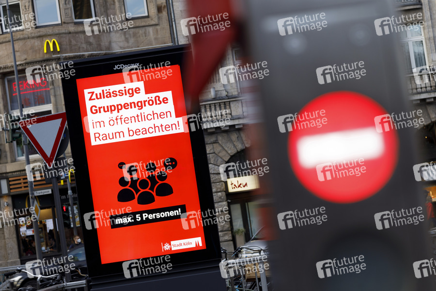 Köln ist weiterhin Corona-Risikogebiet: Inzidenzwert stieg am Samstag auf Inzidenzwert bei 193,9. Im Bild eine Kampagne der Stadt Köln, die Passanten am Kölner Dom auf die dort geltenden Corona-Regeln hinweist. (Themenbild, Symbolbild) Köln, 06.11.2020