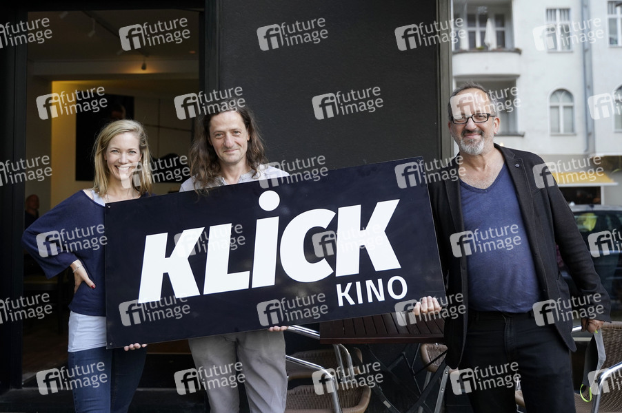 Martina Klier, Sascha Grunow und Christos Acrivulis bei der Wiedereröffnung des Programmkinos 'Klick' in Charlottenburg nach dem Lockdown wegen der Corona-Epidemie. Berlin, 02.07.2020
