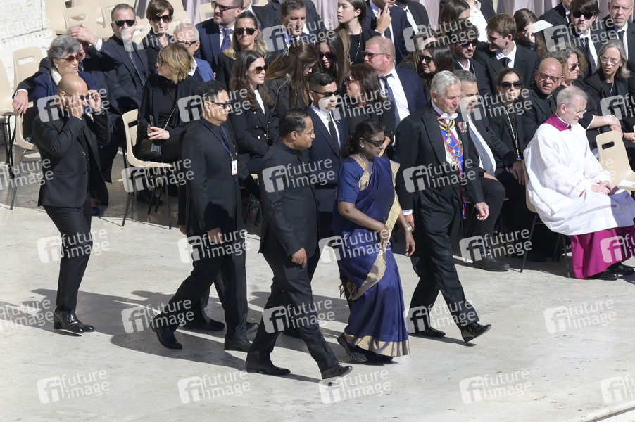 Draupadi Murmu bei der Trauermesse für den verstorbenen Papst Franziskus auf dem Petersplatz. Vatikanstadt, 26.04.2025
