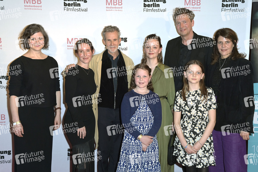 Milena Klemke, Sophia Bösch, Ulrich Matthes, Viola Hinz, Mathilde Bundschuh, Sebastian Brose, Rosa Wirtz und Regina Kräh bei der Premiere des Kinofilms 'Milchzähne' und der Eröffnung vom 20. achtung berlin Filmfestival 2024 im Kino Colosseum. Berlin, 10.04.2024