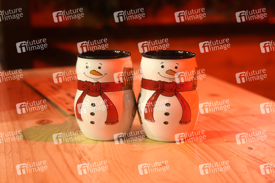 Schneemann-Trinkbecher auf dem City-Weihnachtsmarkt an der Gedächtniskirche auf dem Breitscheidplatz. Berlin, 16.12.2024