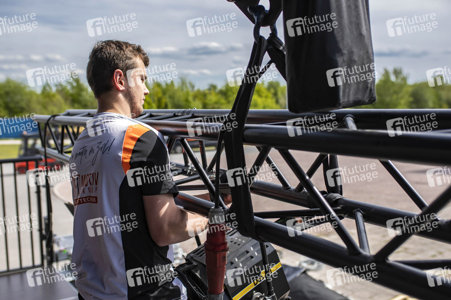 Die Bühne für die Autokonzert-Reihe an der Messe Erfurt wird aufgebaut. Die Eventreihe findet mit fünf Konzerten vom 20. bis 24. Mai 2020 statt. Erfurt, 18.05.2020