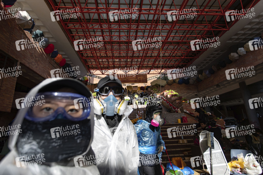 Polytechnische Universität Hongkong, Streik, Protest gegen Regierung, Hong Kong Proteste, Massenbewegung, Politik, Demo, Demonstration, Demonstrationen, Demonstranten, Maskierung, Vermummung, Gewalt, Protestaktionen, China, Unruhen, Kämpfe, Hong Kong Polytechnic University