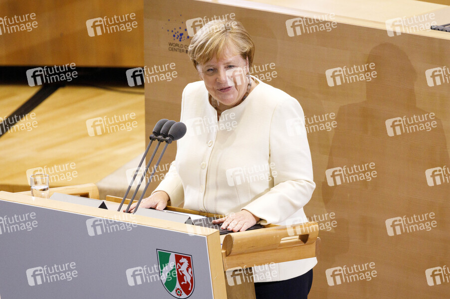 Angela Merkel bei der Verleihung des Staatspreises des Landes Nordrhein-Westfalen 2019 an Klaus Töpfer im WCCB. Bonn, 16.09.2019