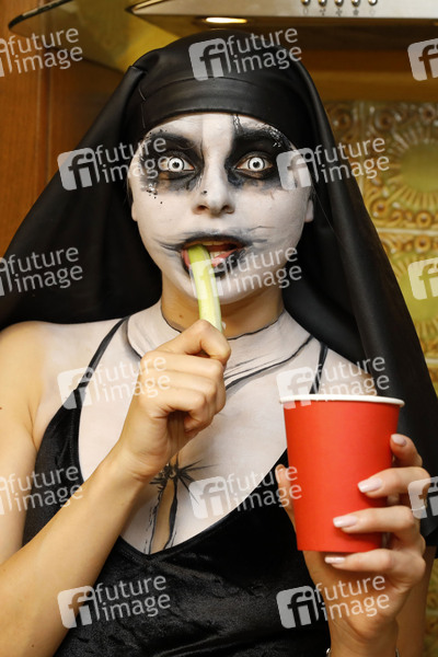 Prominenz, Celebrity, Celebrities, Feier, Party, Unterhaltung, Entertainment, Verkleidung, Kostüm, Horror, Facepainting, Model, Moderatorin