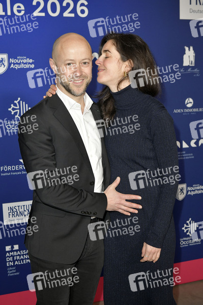 Fabian Gasmia und Aurelie Bros bei der Soiree francaise du cinema mit der Verleihung des französischen Kulturordens Ordre Officier des Arts et des Lettres im Rahmen der Berlinale 2026 / 76. Internationale Filmfestspiele Berlin in der Französischen Botschaft. Berlin, 16.02.2026