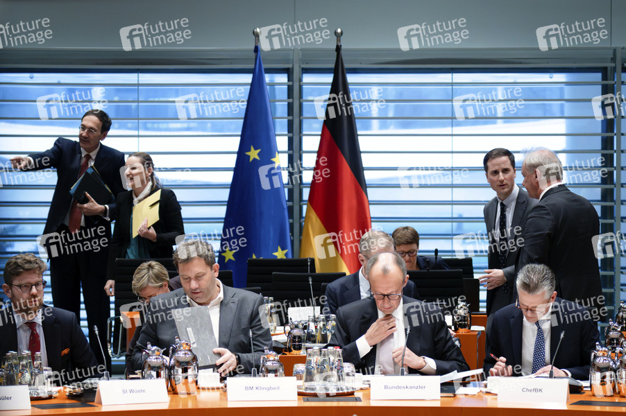 Lars Klingbeil, Friedrich Merz und Thorsten Frei bei der Konferenz der Ministerpräsidenten der Länder im Kanzleramt. Berlin, 04.12.2025