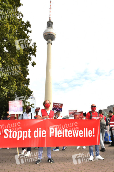 Unter dem Motto #AlarmstufeRot protestieren Mitarbeiter der Kultur-und Veranstaltungsbranche in Berlin für Soforthilfen für die Veranstaltungswirtschaft. Durch die Schließungen und Absage von Veranstaltungen während der Corona-Pandemie stehen viele Kulturschaffende, Veranstalter, Messe- oder Bühnenbauer, Techniker und Kunstschaffende vor dem Aus. Berlin, 09.09.2020