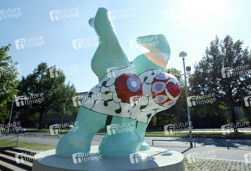 Kunstwerk von Niki de Saint Phalle von 1974, Frauenfiguren mit überdimensionierten Geschlechtsteilen