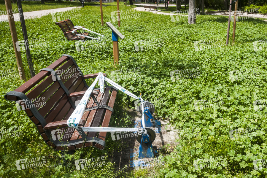 Verwilderte Parkanlage im Zentrum Madrids am 47. Tag seit Verhängung des Ausnahmezustands durch die spanische Regierung wegen der Coronakrise. Madrid, 30.04.2020