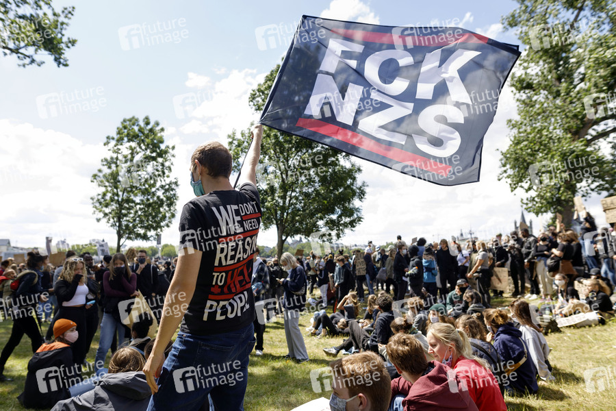 Teilnehmer der Anti-Rassismus-Demonstration von Black Lives Matter in der Deutzer Werft. Köln, 06.06.2020