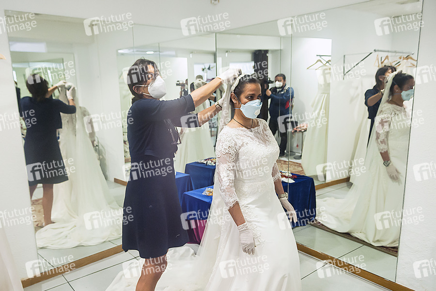 In einem Geschäft für Brautmoden am 57. Tag seit Verhängung des Ausnahmezustands durch die spanische Regierung wegen der Coronakrise. Madrid, 10.05.2020