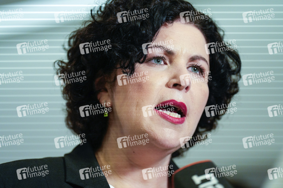 Amira Mohamed Ali bei der Berichterstattung zur Landtagswahl 2024 in Brandenburg aus dem Landtag. Potsdam, 22.09.2024