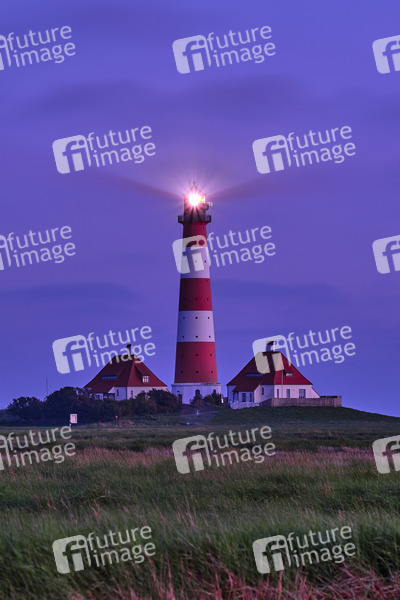 Leuchtturm Westerheversand auf einer Warft auf der Halbinsel Eiderstedt. Westerhever, 29.05.2021