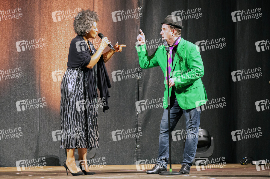 Fola Dada und Bernd Kohlhepp / Herr Hämmerle beim Open Air Spezial 'Hämmerle kommt! Mit Fola Dada!' im Kulturhaus Caserne. Friedrichshafen, 27.06.2020