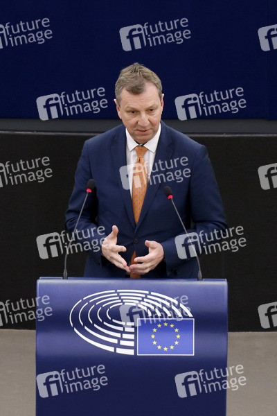 Andrzej Halicki im Plenarsaal des Europäischen Parlaments. Straßburg, 07.03.2022